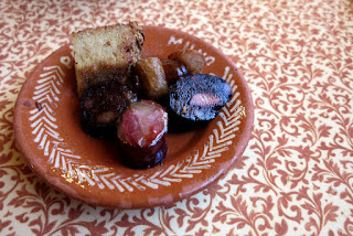 Comida típica, feita à frente de todos: morcela, farinheira, chouriço e broa frita de entrada. Arroz de vinha-de-alhos como prato principal e uma malga de tinto de Silgueiros para empurrar. Sobremesa? Já não havia espaço porque a distância entre o banco e o depósito não cresce.