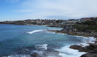 Bondi Beach é uma praia à moda antiga, com as casas de veraneantes, os hóteis típicos, uma marginal onde muita gente faz desporto, murais pintados e um mar azul esverdeado com umas ondinhas a lembrar o Furadouro, ou Espinho, ou a Póvoa, ou Santa Cruz, ou as Maçãs ou outra praia típica do nosso Portugal.