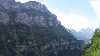 Para se chegar lá, primeiro de carro, percorri uma daquelas estradas dos Alpes que adoro, no meio do verde, subindo a montanha entre montes e escarpas, curva contra curva. Daquelas estradas em que, se fosse num carro de corrida era capaz de ecoar o som do motor, da caixa de velocidades, dos pneus por quilómetros e quilómetros.