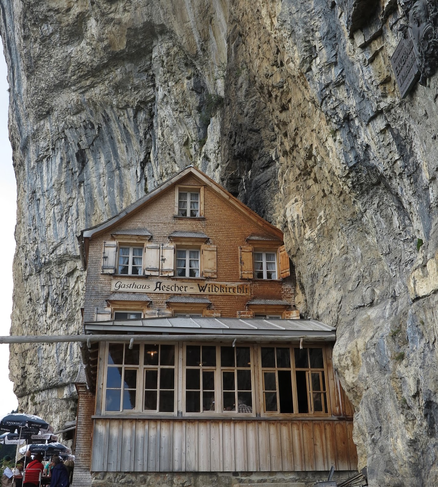 Antes de descer ainda fui ver uma caverna onde tem um altar e se celebra missa: Wildkirchli.