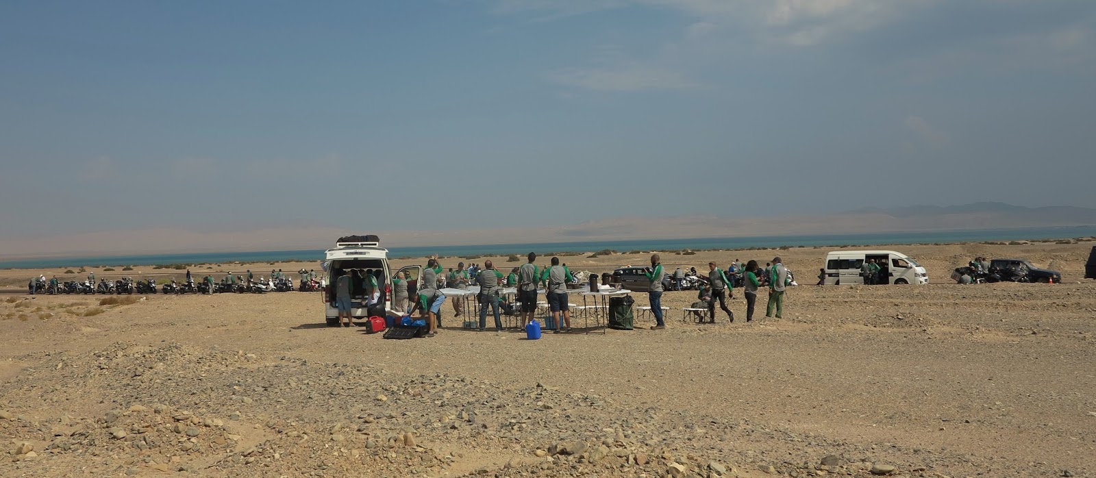 À saída de El Sokhna e durante muitos quilómetros, o Mar Vermelho acompanhou-nos. Mas o dia nasceu nublado e, em vez do azul claro, o mar estava cinzento escuto, fazendo lembrar a nossa Ria de Aveiro nos dias de inverno. Bucólico.
