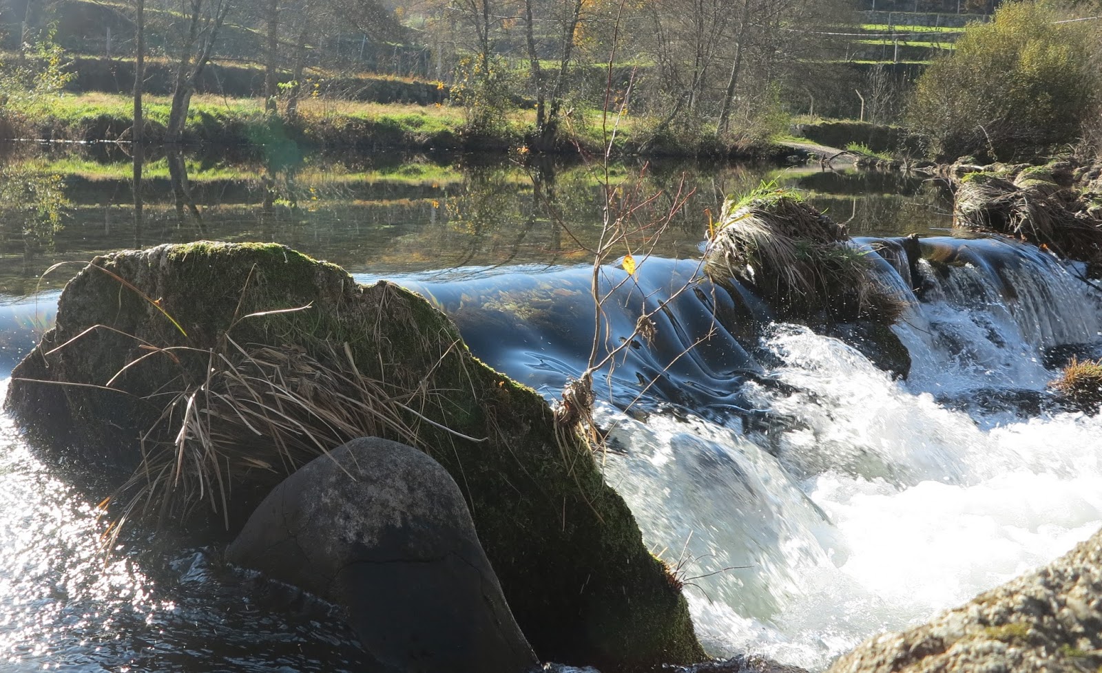 Que encanto. Uma água límpida, cristalina, que o frio ajuda a tornar ainda mais brilhante. Cavalos e um rebanho, uns pássaros a bebericarem na água. Com passo certo, um conjunto de pedras ajudam a atravessar o rio Paiva, a caminho de Santiago.