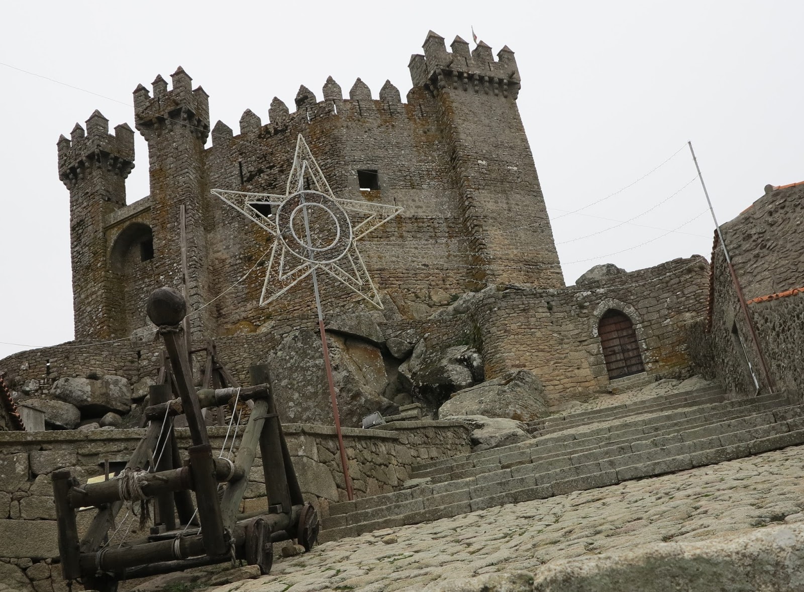 De xisto e granito, despido, com a excêntrica forma de trapézio e com ameias piramidais, lá no alto da vila medieval, vê-se a imensidão das Terras do Demo e a Corga, para meu regalo.